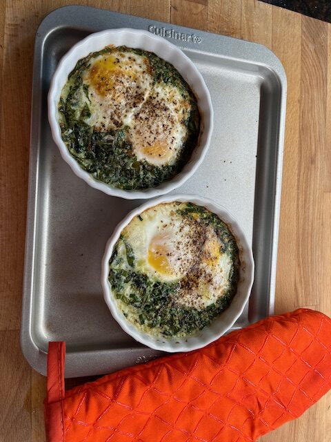 - Serve: Remove the ramekins from the oven and let them cool for a minute. Serve the baked eggs with a side of toast or a fresh salad for a complete meal.