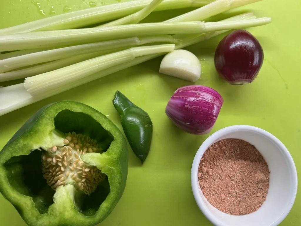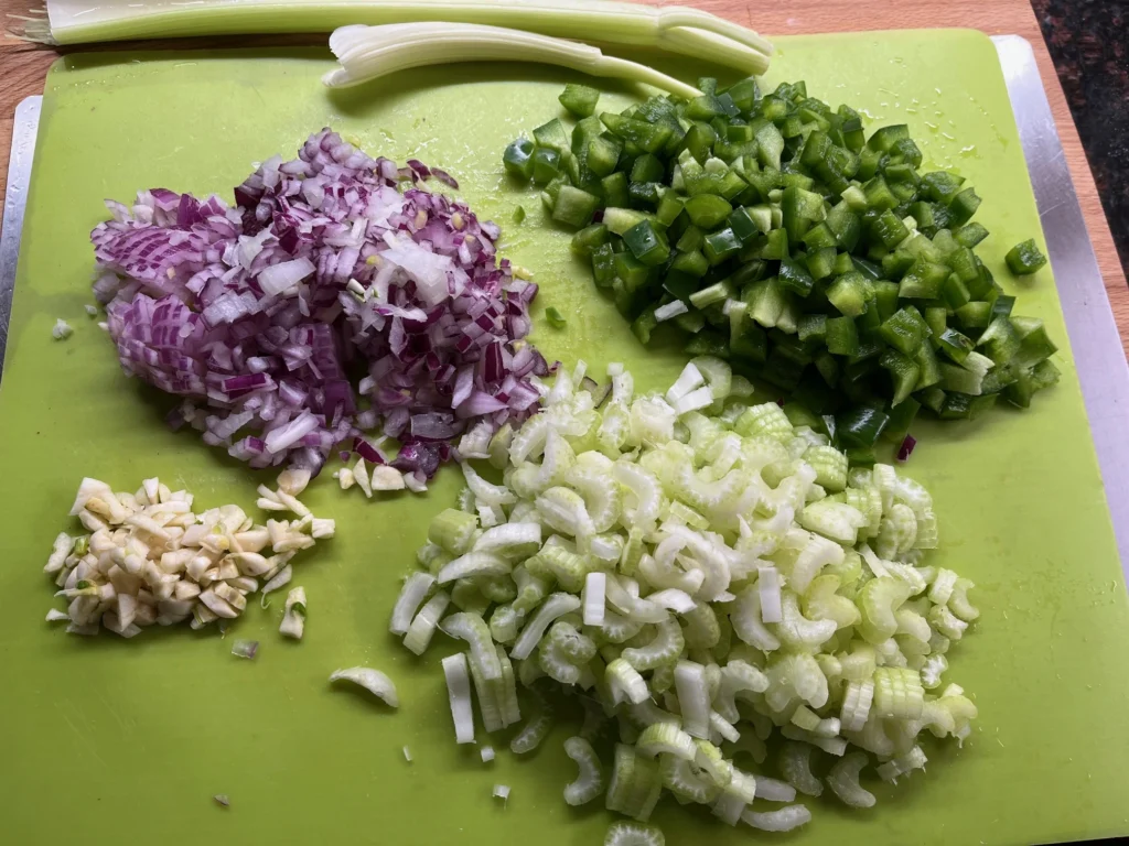 - The Trinity: Onion, green bell pepper, and celery form the backbone of Louisiana cooking. Together, they build the foundation of flavor.